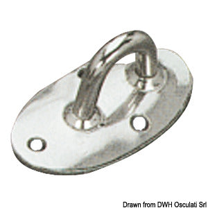 Piastrina in acciaio inox con tre fori, adatta per fissaggio su alberi con Ø 60 mm.