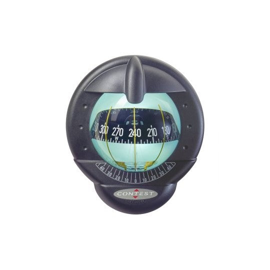 Bussola Contest 101 Ø apparente mm. 100. Rosa rossa con graduazione bianca di 5°, per barche a vela oltre 9 mt. Doppia lettura lato pozzetto e lato cabina. Illuminazione di serie 12-24 V. LED. Provvista di inclinometro e cover. Installazione ad incasso su paratia verticale o sull’albero (con kit albero opzionale)