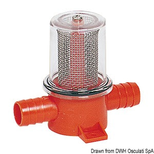 Evita intasamenti causati da detritio capelli. Involucro in plastica trasparente per un facile controllo. Particolarmente adatta per pompe a bielletta tipo Par, Fiamma, FLOJET, Shurflo ecc.