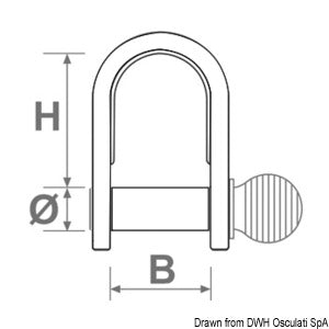 Perno Ø mm | Lunghezza H mm | Larghezza B mm | Carico di lavoro kg | Carico di rottura kg |