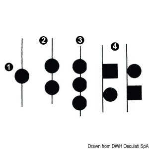 E’ realizzato in policarbonato nero antiriflesso, va issato di giorno, quando la barca é all’ancora. Nel caso la barca non governi, ne vanno issati due verticalmente. Obbligatorio come dotazione di bordo da entro 1 miglio a senza limiti di distanza della costa secondo il nuovo DM n°133 del 21/09/2024