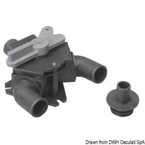 Fabbricata in nylon rinforzato con fibre. Prolunga passa paratia che permette di montare la maniglia a vista e la valvola nascosta. La maniglia può essere bloccata con un lucchetto.